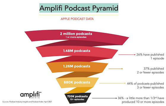 War iTunes über Jahre hinweg das führende Verzeichnis für Podcasts, hat sich dies in den vergangenen Monaten merklich geändert. Amazon und Spotify haben Apple hier inzwischen den Rang abgelaufen. In Cupertino ist dies natürlich nicht unbemerkt geblieben und Apple versucht hinter den Kulissen auch angeblich das Ruder wieder herum zu reissen. Ein Problem könnte unter anderem sein, dass die Podcast-Kategorie in iTunes inzwischen zwar über 2 Millionen Titel zählt, hiervon allerdings ein knappes Viertel über lediglich eine einzige Folge verfügt, wie Amplifi Media auf Basis von Daten von Podcast Industry Insights ermittelt hat. Man spricht dabei von sogenannten "Once-and-Done" Podcasts.