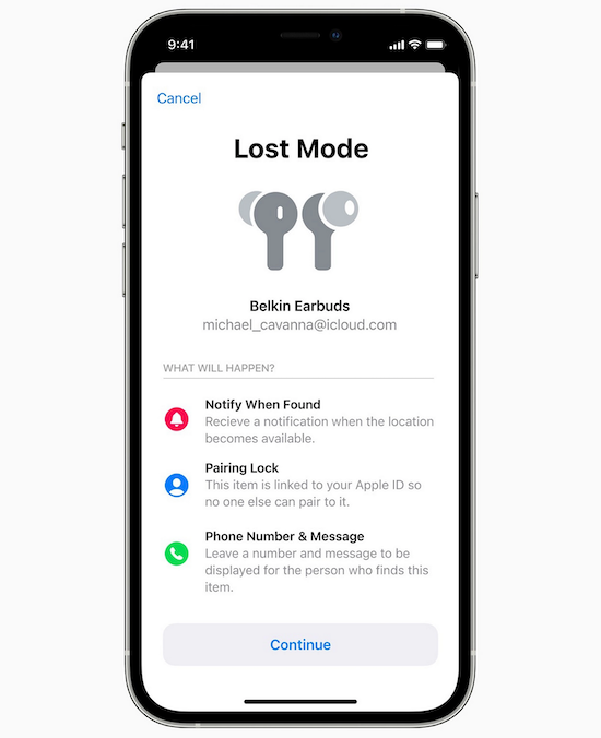 Wie bereits aus den Betas von iOS 14.5 bekannt, werden die kompatiblen Produkte im "Objekte"-Tab in der "Wo ist" App auftauchen und im Handel mit einem "Works with Apple Find My" Label gekennzeichnet. Auf Apple-Seite wird mindestens iOS 14.3 oder macOS Big Sur 11.1 benötigt. Ist dies gegeben, kann man seine kompatiblen Geräte mit der "Wo ist?" App auf einer Karte lokalisieren, einen Ton abspielen, um den Standort zu bestimmen, es in den Modus "Verloren" versetzen, um es sofort zu sperren und eine Nachricht mit einer Kontaktnummer auf dem Bildschirm anzeigen lassen. Außerdem kann man das Gerät per Fernzugriff löschen, falls es in falsche Hände geraten ist.