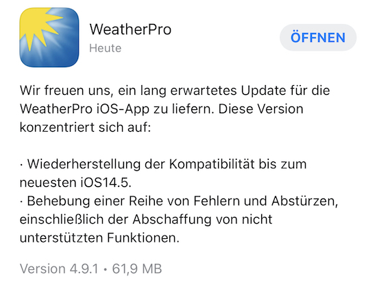 Erstes Update seit zwei Jahren: Was wird aus WeatherPro?