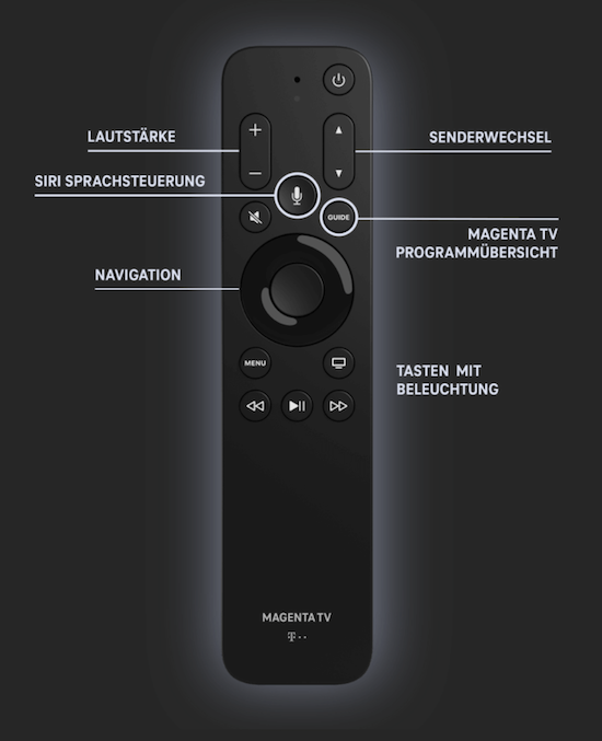 Dort hat man nun nämlich auch das Apple TV 4K im Angebot und bietet es in Komibnation mit seinem Streamingangebot MagentaTV an. Der Clou: Die Telekom legt dem Bundle eine eigene Fernbedienung bei, die voll und ganz auf herkömmliche Knöpfe setzt und somit auf eine Touchbedienung verzichtet. Selbstverständlich hat sich die Telekom die Fernbedienung von Apple zertifizieren lassen. Die Tasten sind beleuchtet und sogar Siri kann dank der vorhandenen Mikrofontaste genutzt werden (wenn man das denn möchte).