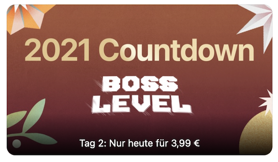 Das Weihnachtsfest rückt mal wieder näher und während sich bei manchen Freude und Besinnlichkeit breit macht, kommt bei anderen eher Hektik beim Weihnachtsshopping auf. Vor allem für Kinder bedeutet die Zeit bis zum Weihnachtsfest jeden Tag ein bisschen Freude beim Öffnen der Türen des Adventskalenders. Auch Apple bietet in diesem Jahr wieder eine Dezember-Aktion an und weitet diese gar auf 31 Tage, also bis zum Ende des Monats aus. Unter dem Motto "2021 Countdown" wird man dabei jeden Tag mit einem neuen Inhalt aus dem Film-Bereich des iTunes Store zum Sonderpreis beschenkt. Heute erhält man auf diese Weise den Action-Blockbuster Boss Level mit Mel Gibson für nur € 3,99 zu kaufen.