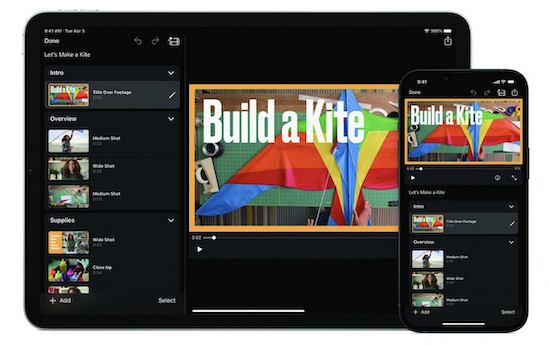 "Storyboards" hingegen gestatten es dem Nutzer, vorgefertigte Video-Einstellungen zu nutzen, um einen schnellen Einstieg in die Videobearbeitung zu bekommen. Auch hier stehen 20 verschiedene Storyboards in unterschiedlichen Kategorien, wie Kochen oder Produktbeschreibungen zur Verfügung. Die kompletten Releasenotes für iMovie für iOS 3.0 lesen sich wie folgt: