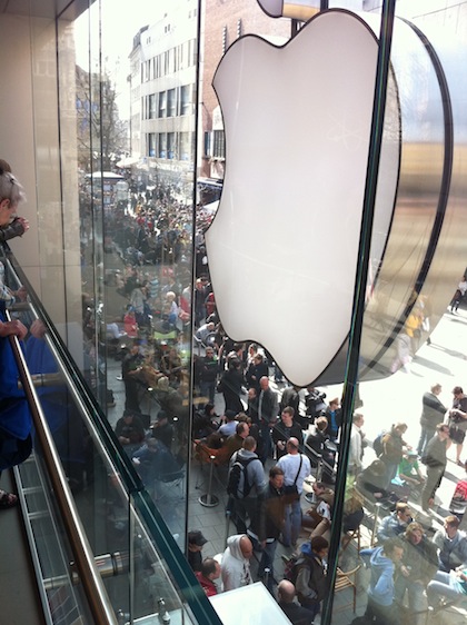 Auch vor den anderen deutschen Apple Stores in München, Frankfurt und dem Oberhausener CentrO bildeten sich zum Teil mehrere hundert Meter lange Schlangen, wie die folgenden Fotos zeigen.