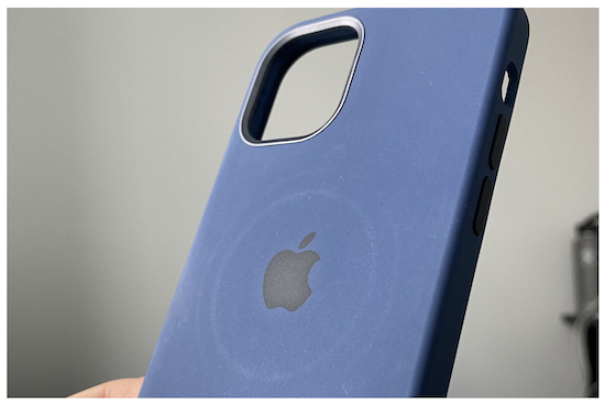 Und auch wenn man ein iPhone 12 besitzt sollte man sich durchaus überlegen, ob man das Gerät mit dem MagSafe Charger laden möchte. Zumindest dann, wenn man das neue Gerät in eine Lederhülle gesteckt hat. In diesem Fall kann der MagSafe Charger nämlich einen runden Abdruck auf dem Leder hinterlassen (Foto unten via MacRumors), wie Apple selbst im Kleingedruckten in einem neuen Support-Dokument warnt. Generell ist dieses Dokument durchaus einen Blick wert, da Apple darin auch weitere Hinweise zur Nutzung des MagSafe-Zubehörs gibt. Unter anderem warnt das Unternehmen davor, Kreditkarten, Ausweise, Hotelkarten, etc. zwischen dem iPhone und dem MagSafe Charger zu platzieren, da diese durch das Magnetfeld beschädigt werden könnten. Ebenfalls interessant: Wird das iPhone sowohl mit einem MagSafe Charger als auch über ein Lightning-Kabel mit Strom versorgt, wird ausschließlich die kabelgebundene Variante genutzt.
