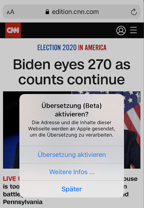 Apple aktiviert Webseiten-Übersetzungen in Safari
