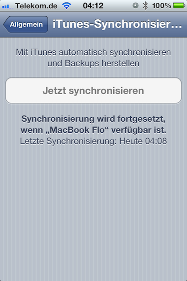 Wireless-Sync muss zunächst in iTunes aktiviert werden (oben) und steht dann auf dem iPhone zur Verfügun (unten).