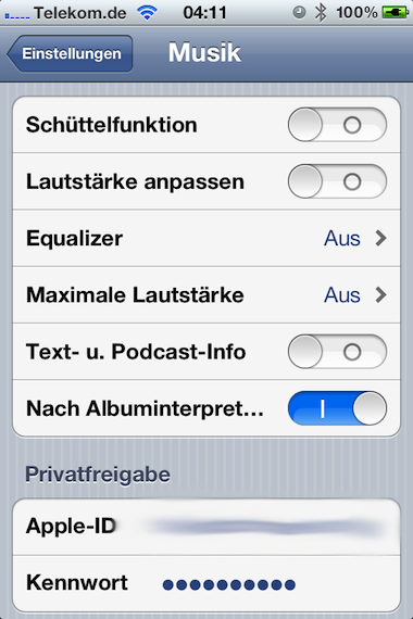 In den Einstellungen der neuen Musik-App auf dem iPhone findet sich nun eine Option "Nach Albuminterpret sortieren".
