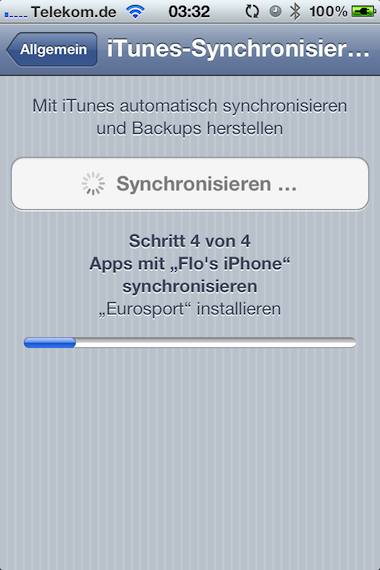 Während des Synchronisationsvorgangs kann man auf demselben Bildschirm in den Einstellungen den Fortschritt betrachten.