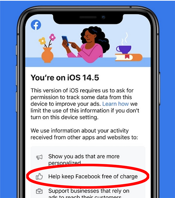 Noch tauchen in der Facebook-App und der Instagram-App keine Tracking-Abfragen gemäß Apples "App Tracking Transparency" auf, weil diese seit der Veröffentlichung von iOS 14.5 nicht mehr aktualisiert wurden. Offenbar hat man hinter den Kulissen des größten sozialen Netzwerks der Welt aber bereits eine Strategie ausgearbeitet, wie man die Nutzer dazu bringen möchte, dem Tracking zuzustimmen. So wird man wohl einen Splash-Screen einblenden, auf dem man den Nutzer mit verschiedenen Argumenten hierzu überzeugen möchte, wie der Twitter-Nutzer Ashkan Soltani berichtet. Eines der Argumente ist dabei die Tatsache, dass man auf diese Weise dafür sorgen kann, dass die Facebook-Dienste auch weiterhin kostenlos bleiben. Dreht man dies um, steckt in der Aussage theoretisch die Drohung, dass Facebook und Co. künftig kostenpflichtig werden könnten, wenn die Nutzer dem Tracking nicht zustimmen.