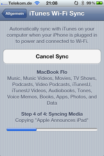 Eine kleine Neuerung betrifft auch das Zurückspielen eines Backups. Hier schubst iTunes nun die Voransicht der einzelnen Homescreens sofort auf das Gerät und versieht die noch nicht synchronisierten Apps mit dem gewohnten Ladebalken bis sie auf dem Gerät gelandet sind. Sollten weitere Neuerungen durchsickern, wird dieser Artikel entsprechend erweitert.