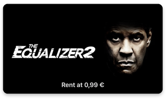 Apple hat zusätzlich zu seinem bereits liebgewonnenen "Movie Mittwoch" nun auch den "Blockbuster fürs Wochenende" ins Leben gerufen. Dabei wird jedes Wochenende ein ausgewählter Film aus dem iTunes-Sortiment für 24 Stunden zum Sonderpreis von nur € 0,99 in HD-Qualität zum Leihen angeboten. In dieser Woche handelt es sich um den Action-Reisser The Equalizer 2 mit Denzel Washington, den man zum Sonderpreis von € 0,99 erhält. Nachdem man den Leih-Film geladen hat, kann er innerhalb von 30 Tagen angeschaut werden. Wie immer bei geliehenen Filmen aus dem iTunes Store gilt: Hat man hiermit einmal begonnen, muss man ihn innerhalb von 48 Stunden beenden.