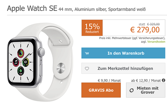 Deal-Tipp: Apple Watch SE heute für nur € 279,- bei Gravis