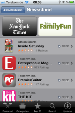 UPDATE: Inzwischen hat Apple auch den Zeitungskiosk-Store über den Button in der zugehörigen App geöffnet.