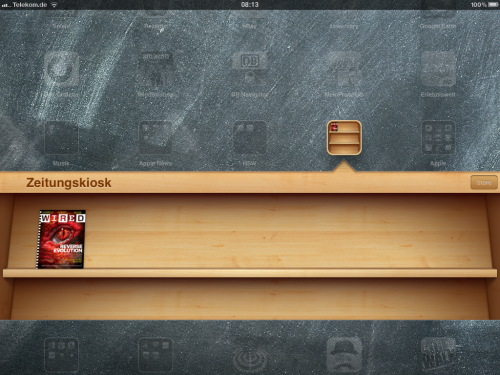 In den kommenden Tagen dürfte dann eine wahre Flut an App-Updates für iOS 5 Optimierungen anstehen. Einen Schritt weiter ist Apple da bereits bei der neuen iOS-Funktion "Zeitungskiosk". Hier tauchen bereits seit gestern Abend erste Titel auf. Auch wenn noch keine deutschen Publikationen dabei sind, können die bereits verfügbaren amerikanischen Zeitschriften, wie z.B. Wired inzwischen im Zeitungskiosk bewundert werden.