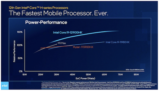 Bereits auf der WWDC Anfang Juni könnte Apple die Umstellung von Intel-Prozessoren auf Apple Silicon am Mac komplett abgeschlossen haben. Doch auch bei Intel geht die Entwicklung natürlich weiter und wie man das so kennt, belebt Konkurrenz bekanntlich das Geschäft. Aktuell hat Intel die neue, 12. Generation seiner Core-Prozessoren für Notebooks vorgestellt. Und nicht nur das, laut eigener Aussage ist der neue Core i9 nicht nur schneller als Apples M1 Max Chip im aktuellen 16" MacBook Pro, sondern der schnellste Mobil-Prozessor aller Zeiten. Im Inneren des neuen Intel-Prozessors kommen 14 CPU-Kerne (6 Performance- und 8 Effizienz-Kerne) zum Einsatz, während es beim M1 Max 10 CPU-Kerne (8 Performance- und 2 Effizienz-Kerne) sind. Die Taktrate des High-End Intel-Chips kann im Turbo Boost bis zu 5,0 GHz betragen, erreicht dann aber auch einen Energiehunger von 115 Watt, was deutlich über der maximalen Stromaufnahme des M1 Max Chips liegt.