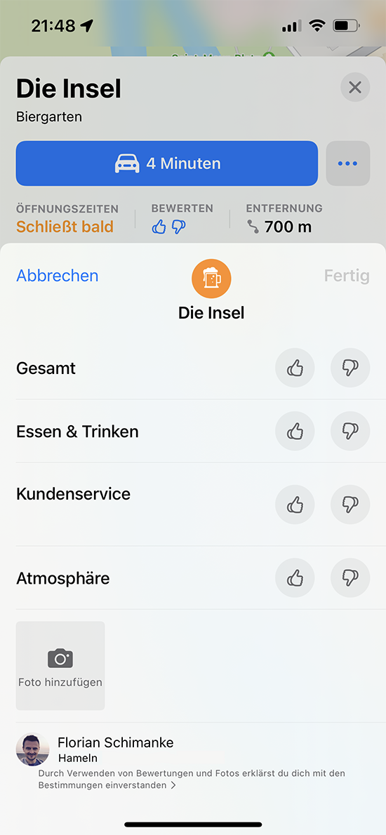 Jetzt auch in Deutschland: Nutzer können in Apple Karten Bewertungen und Fotos hinterlegen