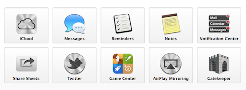 Apple verspricht für OS X Mountain Lion 100+ neue Funktionen, wobei hiervon auch dieses Mal natürlich einige mehr und einige weniger populär und offensichtlich sind. Die gefeatureten neuen Funtkionen sind dabei iCloud, Messages, Reminders, Notes, Notification Center, Share Sheets, Twitter, Game Center, AirPlay Mirroring und Gatekeeper.