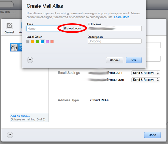Eine ähnliche Umstellung hatte es ja bereits bei dem Wechsel von .Mac zu MobileMe und damit verbunden von @mac.com hin zu @me.com im Jahre 2008 gegeben. Auch die @mac.com Adressen sind seither (wohl auch aus dem oben genannten Grund) unverändert nutzbar geblieben. Apple wird also nicht einfach die registrierten @mac.com und @me.com Adressen auf @iCloud.com umstellen. Stattdessen wird für die neuen Adressen einfach ein sogenannter Alias angelegt. Wenn also jemand bereits Kunde zu .Mac-Zeiten war, hat er nun die drei folgenden E-Mail Adressen: