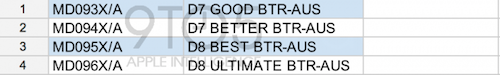 Passend zu der heutigen Ankündigung des Events am kommenden Dienstag haben in den USA die Kollegen von AppleInsider und 9to5Mac Screenshots von Listen veröffentlicht, die die Teilenummern der verschiedenen iPad Mini Varianten zeigen sollen. Darauf zu finden sind insgesamt 24 verschiedene neue Geräte. Gerätselt wird nun, wie sich diese Teilenummern auf die neuen Geräte verteilen. Ziehe ich meinen am Samstag veröffentlichten Screenshot der vermeintlichen Preise zu Rate, würden sich daraus 16 Modelle ergeben: Speicherkapazitäten von 8, 16, 32 und 64 GB in jeweils einer WiFi- und einer Cellular-Variante, wahlweise in schwarz oder in weiß. Was aber ist mit den verbleibenden 8 Teilenummern. Hierfür gibt es bislang zwei Theorien. Die eine besagt, dass es sich bei den von AppleInsider gezeigten Bezeichnungen "Good", "Better" und "Best" um die Varianten WiFi, WiFi+Cellular und