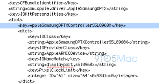 An einer anderen Stelle im Code fand Frey zudem auch Hinweise auf Apples neuen A7-Chip, der vermutlich im iPhone 5S zum Einsatz kommen wird. Hierauf deutet zumindest die Bezeichnung "s5l8960x" hin, die einen Sprung an der vorletzten Stelle gegenüber den Vorgänger-Modellen s5l8950x (A6) und s5l8955x (A6X) aufweist und damit nicht auf eine weitere X-Variante hindeutet. Während relativ aktuelle Gerüchte nahelegten, dass Apple sich bei der Produktion dieser Chips weitgehend vom Konkurrenten Samsung trennen werde, liefert der Code jedoch deutliche Hinweise darauf, dass dies beim A7 noch nicht der Fall ist. Unter anderem dürften auf dem Chip laut der Codeschnipsel SamsungKomponenten für das Display verbaut sein. Der A7-Chip könnte zudem einen deutlichen Leistungsschub gegenüber seinen Vorgängern mit sich bringen, da Apple offenbar Probleme in dieser Richtung gelöst habe. (via 9to5Mac)