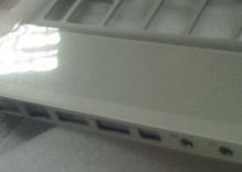 Seite, während sich rechts der Slot für das SuperDrive befindet. Auffällig ist zudem das an das MacBook Air angelehnte, größere Trackpad.