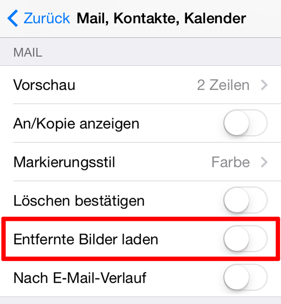 Bleibt also die Frage, wie man sich gegen so etwas wehren kann. Wie man an den oben abgebildeten Codezeilen erkennen kann, basiert die Idee hinter der App darauf, dass die Mails in HTML verschickt und auch geöffnet werden. Unterbindet man dies und öffnet seine Mails beispielsweise als Rich-Text werden die versteckten Grafiken schon mal nicht automatisch geladen. Auf einem iOS-Gerät kann man zudem unter "Einstellungen > Mail, Kontakte, Kalender" die Option "Entfernte Bilder laden" deaktivieren, was dazu führt, dass man die Bilder explizit mit einem Tap in der Mail herunterladen muss.