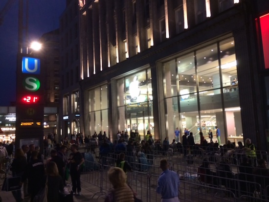Seit 08:00 Uhr haben die Apple Stores heute hierzulande ihre Türen geöffnet. Die ersten halten also bereits ihr neues iPhone 6 oder iPhone 6 Plus in den Händen. Auch der Versand von Vorbestellungen läuft meinen Informationen nach planmäßig, so dass so gut wie alle rechtzeitig bestellten Geräte heute per Hermes, UPS oder DHL den Weg zu ihren neuen Besitzern finden sollten. Wie aus den vergangenen Jahren bereits bekannt, spielten sich vor den Stores auch beim Verkaufsstart des iPhone 6 die bekannten Bilder ab. Warteschlangen wohin das Auge blickt. Dabei wird zwischen solchen unterschieden, die sich für einen Spontankauf bildeten und solchen, die aus Kunden bestehen, die ihr vorbestelltes Gerät in einem Store abholen wollen. Damit die Warterei ein wenig erträglicher wird, verteilt Apple auch in diesem Jahr wieder Kaffee und Wasser an seine Kunden. Neu ist in diesem Jahr die Ausgabe eines digitalen "Reservation Pass", der die Pappkarten der vergangenen Jahre ersetzt.