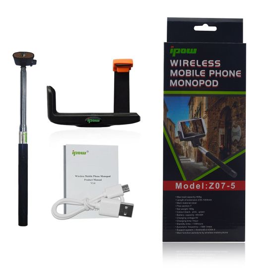 Aber es ist ja nicht so, als hätte ich aus dieser Erfahrung nichts gelernt. Nur für ein paar Euro mehr bekommt man nämlich das, was ich momentan als beste Lösung aus diesem Bereich ansehe. Die Rede ist vom Bluetooth Selfie Stick von IPOW (€ 18,76 bei Amazon). Dieser verfügt nicht nur über eine deutlich bessere Halterung, sondern integriert die oben angesprochene Bluetooth-Fernbedienung zum Auslösen direkt in den Griff des Sticks. Die Halterung hält das iPhone (zusätzlich zur Beschreibung bei Amazon übrigens auch das iPhone 6) zuverlässig in Position und ich habe keine Bedenken, dass es dort einmal herausfallen könnte. Komplett ausgezogen kommt der Stick auf eine maximale Länge von 105 cm und der Verdehungswinkel beträgt 180°. Damit sollte man in der Regel ganz gut zurechtkommen. Für den Bluetooth-Auslöser wird der Stick einfach auf dem bekannten Wege mit dem iPhone verbunden. Ein Knopf am Griff schießt dann das Foto, indem er einen Druck auf den Lautstärkebutton des iPhone simuliert. Hierfür muss der im Stick verbaute Akku aber natürlich mit Strom versorgt werden, was über einen Micro-USB-Anschluss geschieht. Aus meiner Erfahrung funktioniert all dies ganz hervorragend. Einzig der Druck auf den Auslöser erfordert ein wenig Übung, um dabei nicht zu stark an dem Stick zu wackeln und damit das Foto unscharf zu machen. Hier hat man den Dreh allerdings schnell raus, so dass der Bluetooth Selfie Stick von IPOW ganz klar meine Empfehlung in diesem Bereich ist.