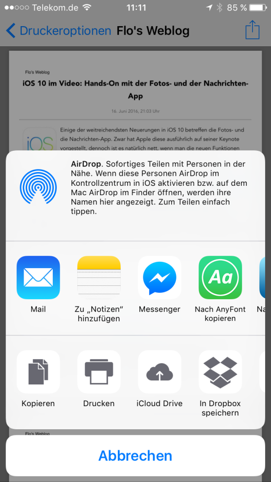 UPDATE: Wie mir mein Leser Thorsten inzwischen mitgeteilt hat (und auch in den Kommentaren zu diesem Artikel anmerkt), ist diese Funktion bereits über 3D Touch unter iOS 9 möglich. Einfach fest auf die Vorschau drücken und schon steht der Inhalt als PDF zur Verfügung. Vielen Dank dafür!