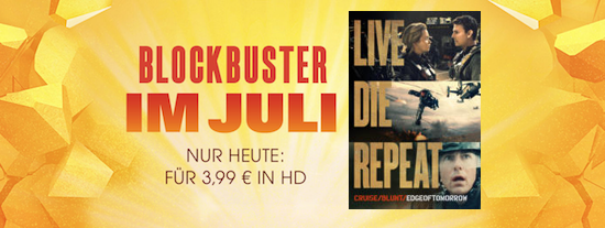 Apple versüßt allen Filmfans den diesjährigen Juli mit einer besonderen Aktion im iTunes Store. Unter dem Motto "Blockbuster im Juli" wird dabei jeden Tag ein neuer Film im iTunes Store für 24 Stunden auf lediglich noch € 3,99 im Preis gesenkt. Hierfür erhält man dann die Kaufversion des Titels in HD-Qualität. Am heutigen Tag handelt es sich dabei um den Science-Fiction- und Fantasy-Streifen Live, Die, Repeat - Edge of Tomorrow (€ 3,99 im iTunes Store) mit Tom Cruise. Selbst wenn man aktuell keine Zeit hat, sich den Streifen zu Gemüte zu führen, kann ein Zuschlagen bei diesem Preis nicht schaden. Da es sich um die Kaufversion handelt, kann man den Film nach dem Kauf schauen wann man will und ihn auch jederzeit aus iCloud erneut kostenlos herunterladen. Viel Spaß!
